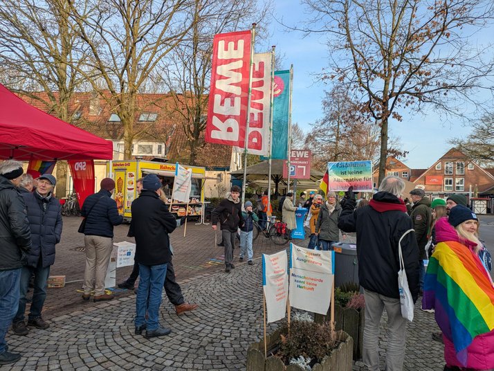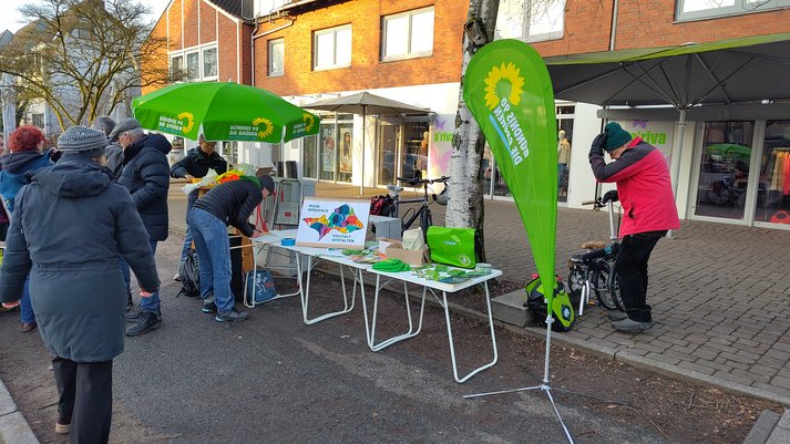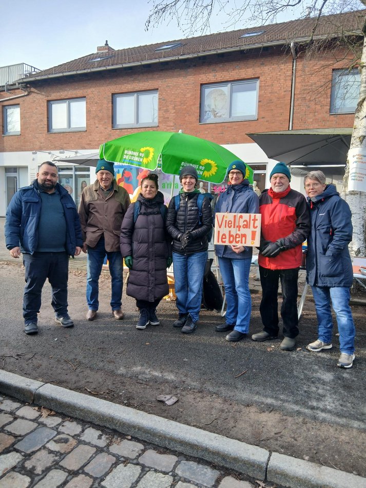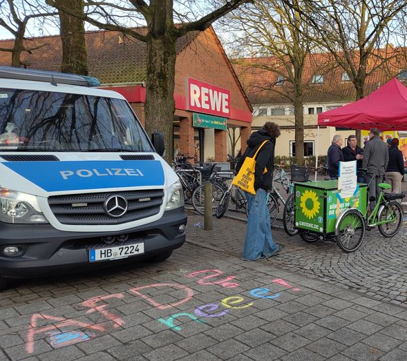 Die vom Verfassungsschutz als in Teilen gesichert rechtsextrem eingestufte AfD hat für Samstag, 17.01.2026 von 9:00 bis 14:00 einen Stand vor dem Rewe-Markt in Borgfeld angemeldet. Selbstverständlich sind wir Grünen da auch präsent und vertreten die Werte unserer Partei! Anstatt verkürzt, populistisch und oft mit Falschaussagen unterlegt gegen alles und jedes zu wettern und unsere Demokratie systematisch zu untergraben, stehen wir für Verfassungstreue. Wir arbeiten für ein freundliches und solidarisches Miteinander in einer vielfältigen Gesellschaft und setzen uns mit Nachdruck für eine lebenswerte und gesunde Zukunft ein, deren Perspektive weit über eine Wahlperiode hinausreicht. Dazu gehört auch die Willkommenskultur für Geflüchtete, die im Rahmen unserer Veranstaltungsreihe „Moin Borgfeld“ thematisiert wird. Wir betonen, dass sich der Einsatz dafür lohnen wird, da nur durch Zuwanderung und engagierte Integration dem jetzt schon eklatanten Arbeitskräftemangel z.B. im Bereich Pflege begegnet werden kann. Das Beispiel der Geflüchteten in Borgfeld von 2015 hat bewiesen, dass dies keine Illusion ist.