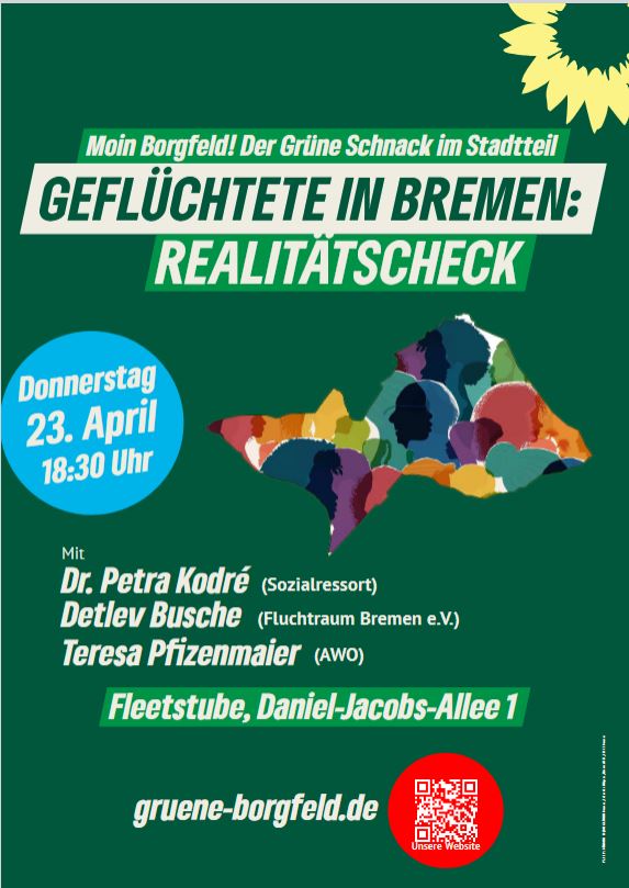 Kürzlich wurde der Baubeginn des Übergangswohnheims für Geflüchtete für August angekündigt. Gegen den Neubau an der Stelle des früheren „Borgfelder Landhauses“ regt sich bei Teilen der Borgfelder Bevölkerung Widerstand. Dass das Heim in Bremen gebraucht wird, ist erwiesene Tatsache. Wir Grünen möchten mit unserer Veranstaltungsreihe diejenigen ansprechen, die die künftigen Bewohnerinnen und Bewohner willkommen heißen und dabei unterstützen möchten, sich bestmöglich zu integrieren. Ebenso haben wir Verständnis für skeptische Stimmen – auch sie sollen im Rahmen unserer Reihe ein offenes Ohr finden.