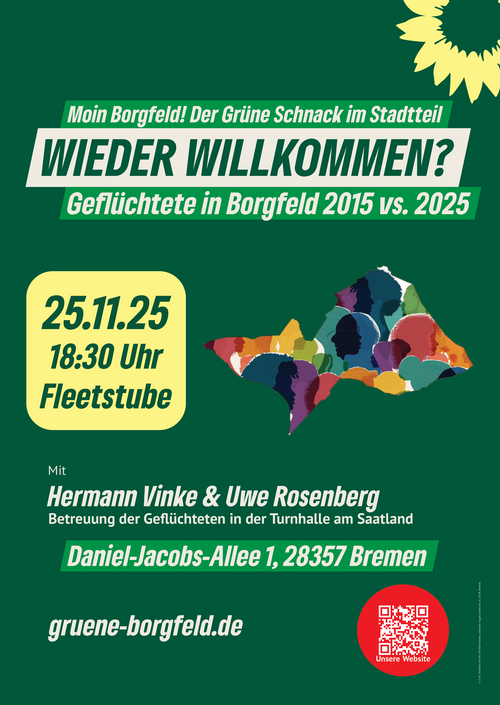 Ausgehend von einem Rückblick auf die geflüchteten Jugendlichen vor 10 Jahren wollen wir konstruktive Gespräche führen, Chancen ebenso ansprechen wie Herausforderungen, die sich aus der Anfang 2027 erwarteten Eröffnung des Übergangswohnheims in Borgfeld ergeben könnten, Ideen und Kritikpunkte sammeln. Was können wir aus der damaligen Situation lernen? Welche grundlegenden Unterschiede wird es 2027 im Vergleich zu 2015 geben? Welche Bedeutung hat die veränderte politisch-gesellschaftliche Konstellation?