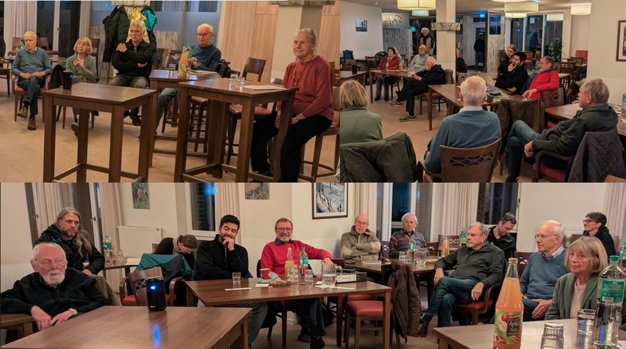 Rund 20 Gäste waren unserer Einladung nachgekommen, die Frage „Wieder willkommen? Geflüchtete in Borgfeld 2015 vs. 2025“ zu diskutieren. Unter ihnen waren der Ortsamtsleiter Karl-Heinz Bramsiepe und sein damaliger Vorgänger Jürgen Linke sowie eine ganze Reihe der 2015 involvierten Ehrenamtlichen und weiterer Interessierter. Hermann Vinke und Uwe Rosenberg gaben Auskunft, wie sie seinerzeit den „Runden Tisch Borgfeld“ ins Leben gerufen und das Tagesprogramm, insbesondere den Spracherwerb der Jugendlichen aus vielen verschiedenen Nationen, organisiert hatten. Die breite internationale Erfahrung der beiden und ihr Interesse an verschiedenen Kulturen spielten dabei eine ganz wesentliche Rolle.