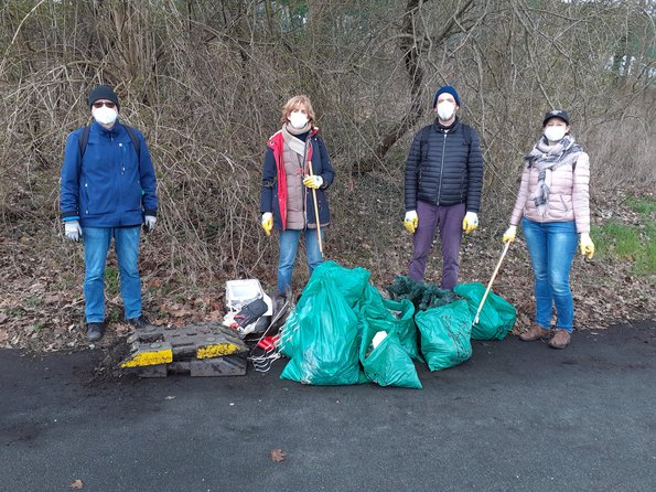 Wir stellten fest, dass sich Mengen von Verpackungsmüll in Hecken und Büschen, in Mauernischen und an Wegekanten verfangen hatte, es gab viel zu tun.
