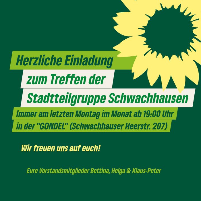 Anmeldung/Kontaktaufnahme zur Stadtdteilgruppe Schwachhausen gerne über schwachhausen(at)gruene-bremen-nordost.de