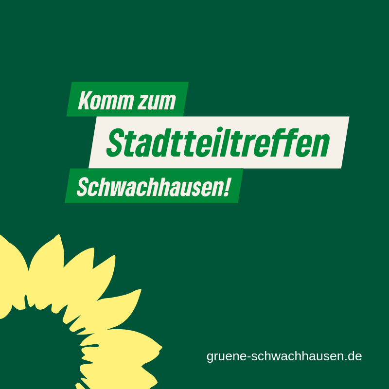 Das offene Stadtteilgruppen-Treffen SCHWACHHAUSEN für GRÜNE Mitglieder und Interessierte findet regelmäßig am letzten Montag des Monats statt. NEUE sind herzlich [...]